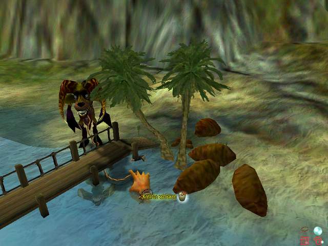 Hier sieht man eine Kreaturentauschstation. Auf der ersten und vierten Insel hat man die Möglichkeit seine Kreatur