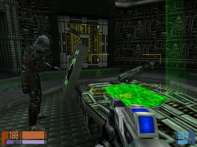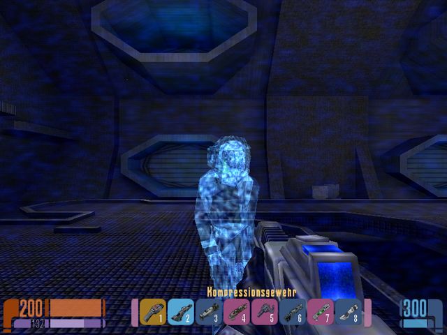 Wundervolles Beamen. Am unteren Bildrand hat man seine Statusleiste mit Lebenskraft, Munition und allen verfügbaren Waffen.