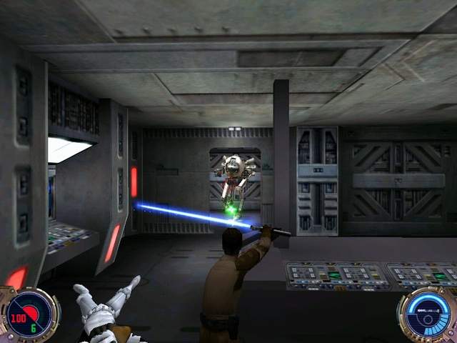 Was Desann nicht alles für Spielsachen hat, tztz. Nur gut, daß dieses Droidenmonster nicht durch die Tür passt. So