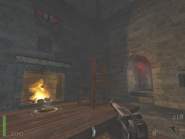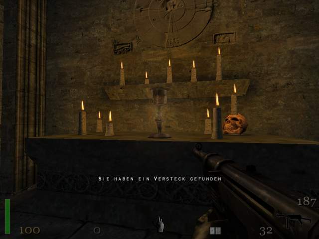 Hinter einem Bild ist ein Hebel, dieser öffnet einen Safe, der wiederum hinter einer Fahne versteckt ist. Jetzt noch einen